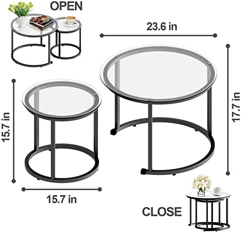 With dimensions of 23.6″ D x 23.6″ W x 17.7″ H, these nesting tables fit comfortably in compact spaces while offering generous surface area. Whether used as coffee tables, side tables, or accent tables, they bring both function and modern style to your living room, bedroom, or office.