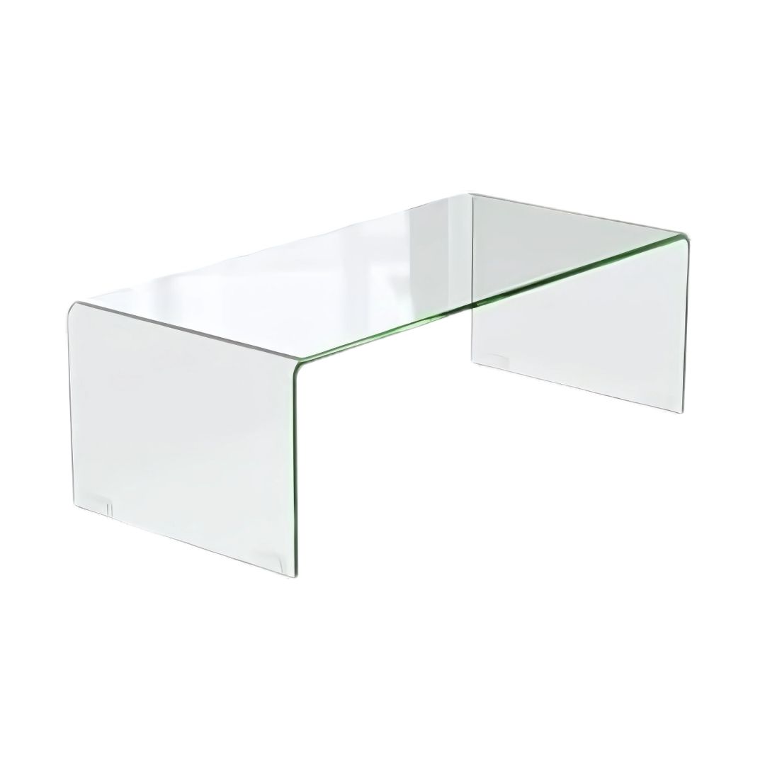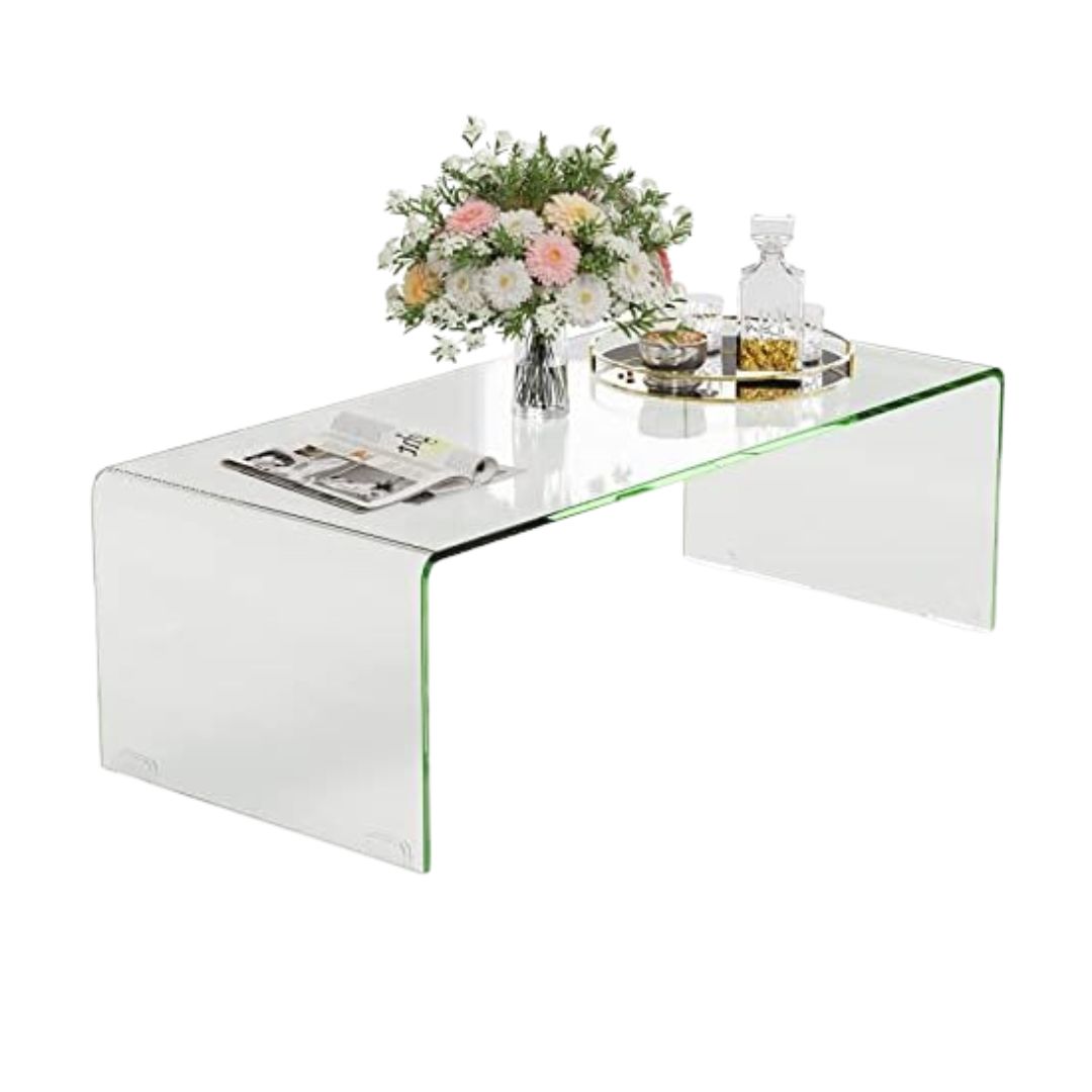Home Shop Modern & Minimalist Modern Clear Glass Coffee Table with Rounded Edges Waterfall Design