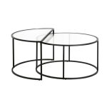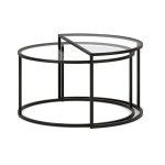 Black Nesting Glass Coffee Table Set, 2-Piece Modern Frame Design