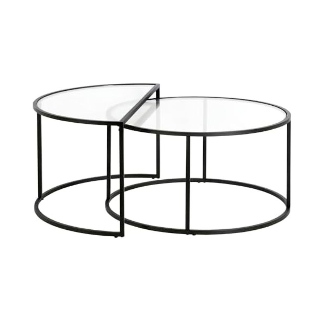 Black Nesting Glass Coffee Table Set, 2-Piece Modern Frame Design $201.00